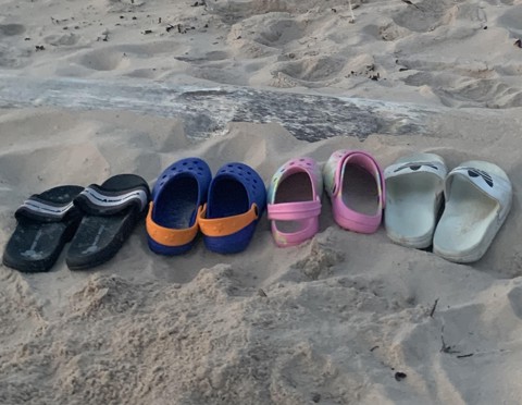 The image of shoes on the beach was chosen by parents to represent the idea of asking others to "walk a mile in the shoes of parents and children," to develop empathy for the complex circumstances that they and their families have lived through.
